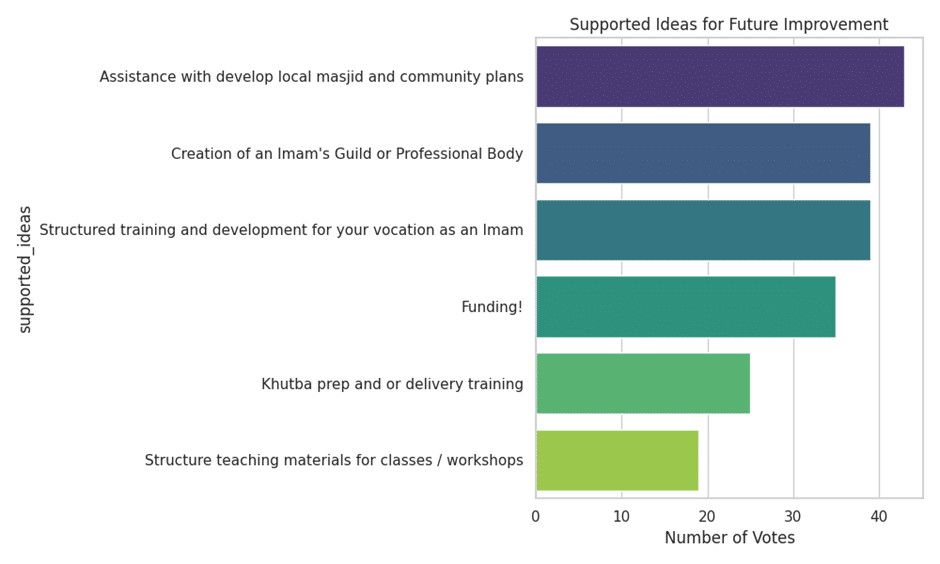 - An Imam’s Guild (62.9%): A professional body to provide a collective voice, HR standards, and peer support.
