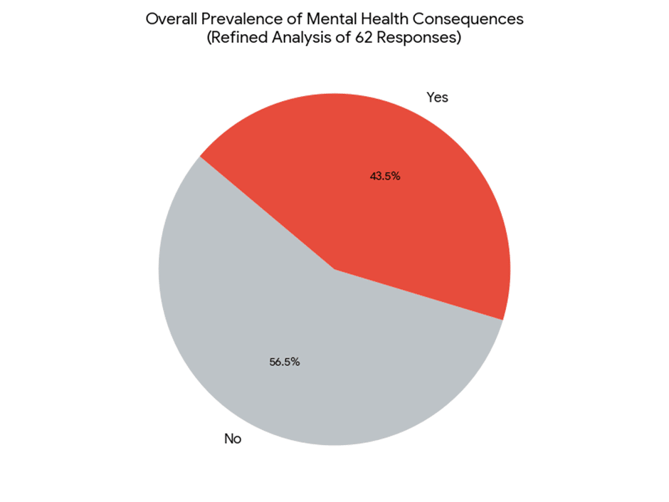 As shown in the pie chart below, 43.5% of UK Imams report work-related mental health consequences.