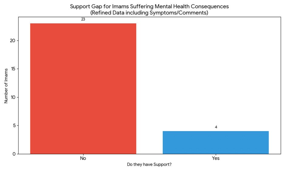 - The Support Reality: Of those Imams who reported mental health issues (a sub-sample of the total), 85% explicitly stated they have no support from their institutions.