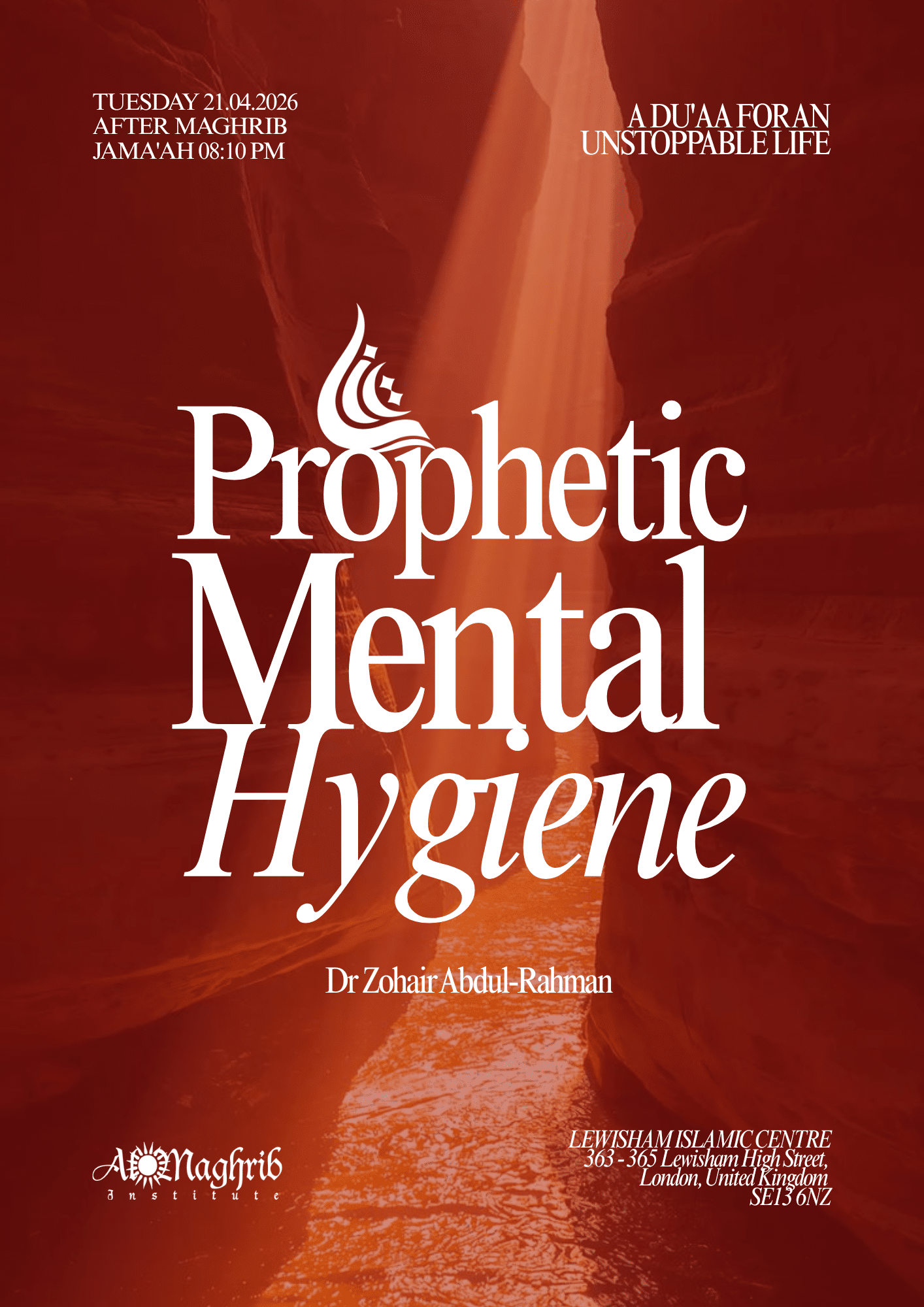 Prophetic Mental Hygiene by Ustadh Dr. Zohair Abdul-Rahman + Add to Google Calendar + iCal / Outlook export 00 days 00 hours 00 minutes 00 seconds Date 21st Apr Time 20:10 - 22:30 Category Events Imam Ashraf Imam Sabir Imam Shakeel Public Staff Share this event